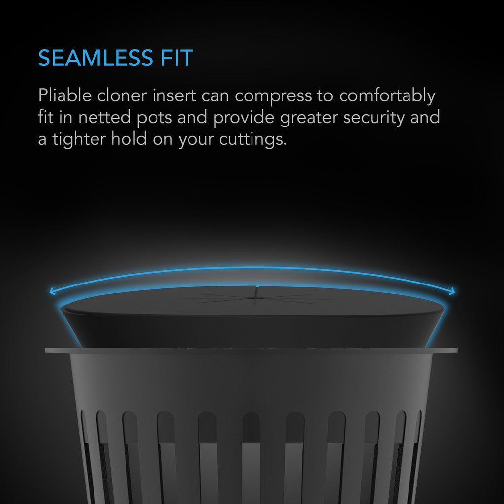 A cloner insert designed to support the growth of plant cuttings by keeping them upright while leaving room to expand. Made of a smooth EVA rubber that is PH-neutral and waterproof, making it safe for use with seedlings and sprouts. Its pliable 8-spoke design protects your seedlings and clones during their earlier growth stages by relieving pressure while not pinching their stems. You can firmly fit the plant collar in netted pots for optimal security as your plant develops